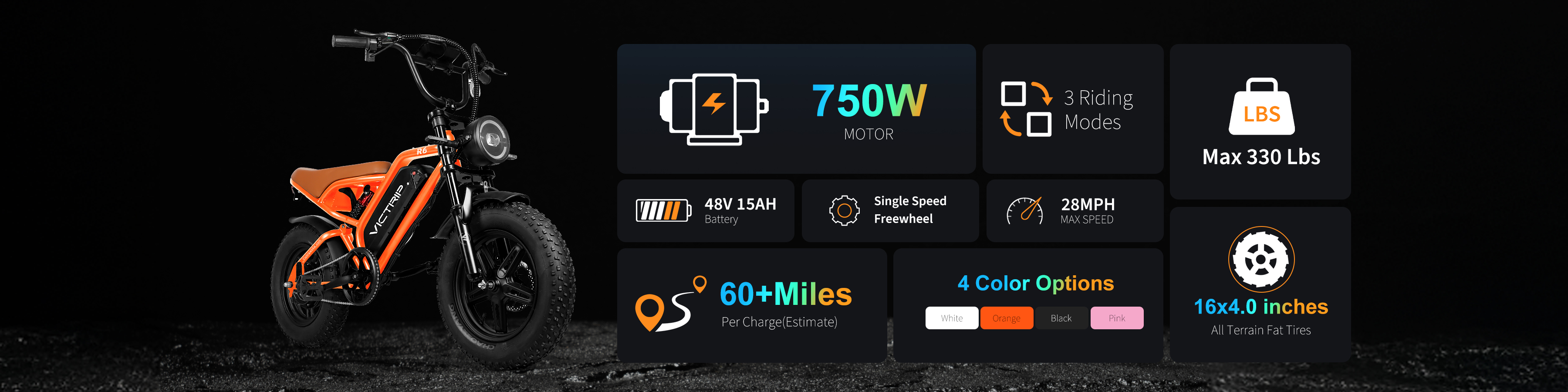 In order to let more people enjoy the fun of riding, Victrip has launched the new R6 electric bicycle! This small motorcycle with 16-inch tires is tailored for young people and shorter riders. The lightweight design makes it a great choice for urban commuting and short trips.