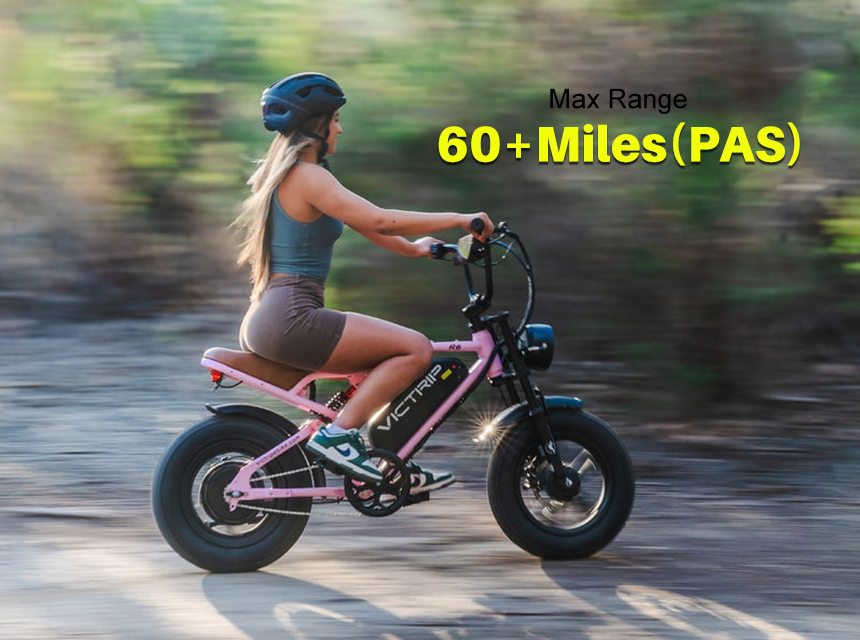 The Victrip R6 Electric Off Road Bike is powered by a high-capacity LG 48V15Ah battery with UL-certified 21700 cells, offering 6% higher energy density, enhanced power output, and an impressive 60+ mile range in pedal-assist mode.