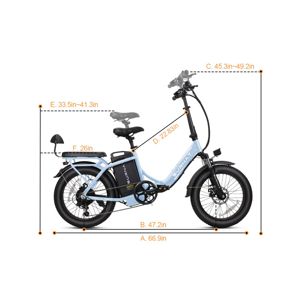 With just 3 simple steps, S10 e bike folding can be folded up in 15 seconds.It can be folded and carried in various scenarios, including subways, elevators, buses and car trunks. Very easy to store or take with you on a trip.Folded size: 40*24*34 (inches)